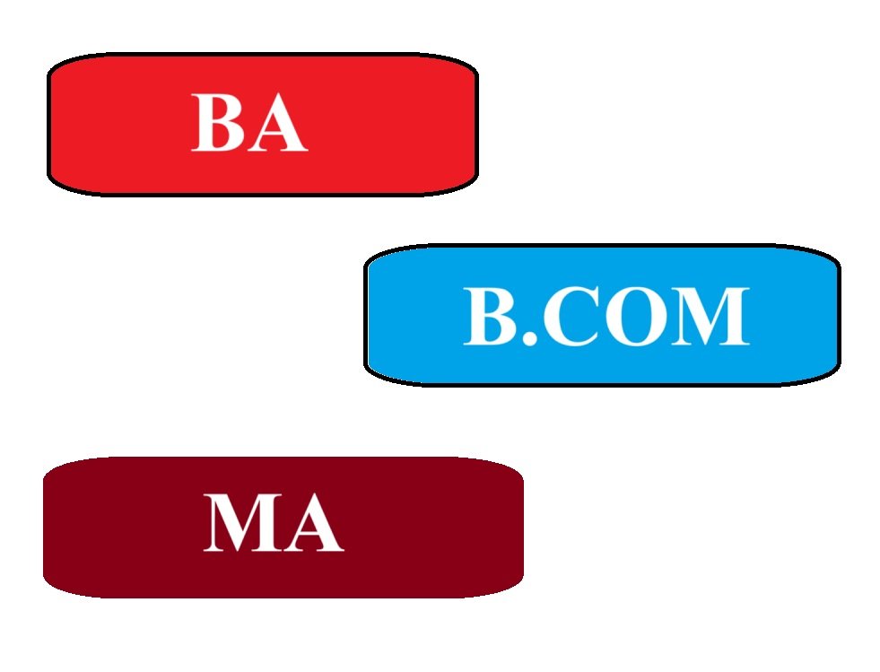 In degree colleges, courses are broadly categorized as undergraduate (UG) and postgraduate (PG). Undergraduate courses like B.A., and B.Com three-year programs leading to a Bachelor's degree. Postgraduate courses, such as M.A in Economics are two-year programs leading to a Master's degree.